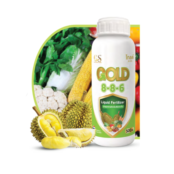 GOLD 8-8-6 là loại phân bón lá dạng lỏng chứa các chất dinh dưỡng đa lượng (NPK) và vi chất dinh dưỡng ở dạng amin axit chelate , được thiết kế để bón vào lá trên cây như một chất bổ sung nhằm ngăn ngừa sự thiếu hụt chất dinh dưỡng có thể hạn chế sự tăng trưởng và năng suất cây trồng. Tỷ lệ GOLD 8-8-6 hấp thụ rất cao qua lớp biểu bì, thành tế bào hoặc màng tế bào trong vòng 3 giờ trong điều kiện thời tiết khô ráo. GOLD 8-8-6 tan trong nước và không độc đối với cây trồng khi sử dụng theo hướng dẫn. Nên áp dụng GOLD 8-8-6 dựa trên kết quả phân tích mô thực vật hoặc đất.